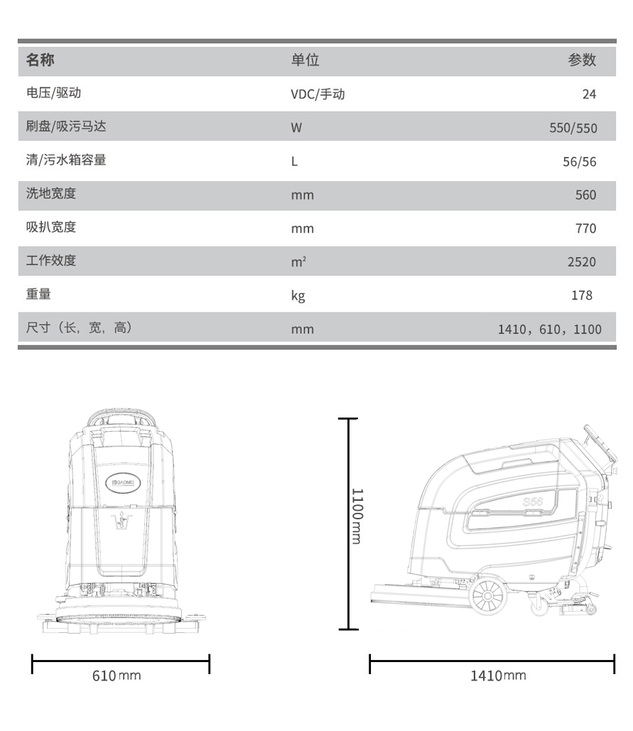 S56高美智慧型洗地機|手推式洗地機